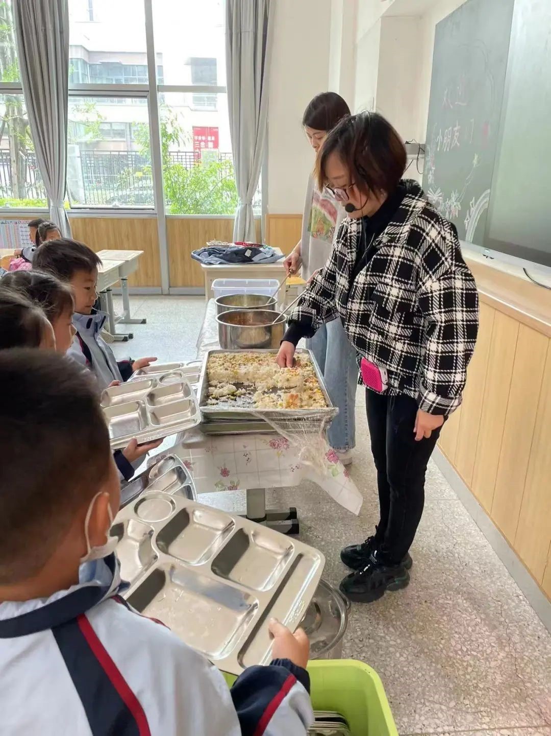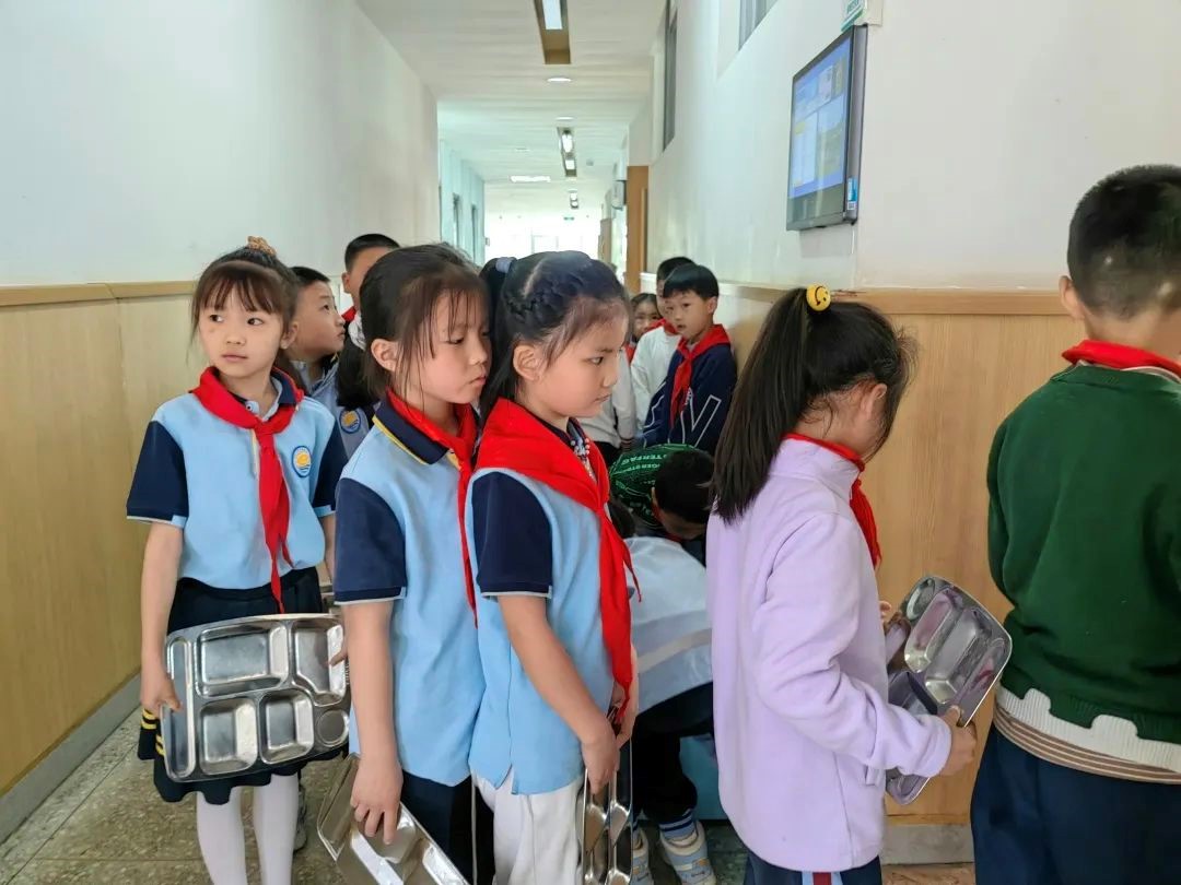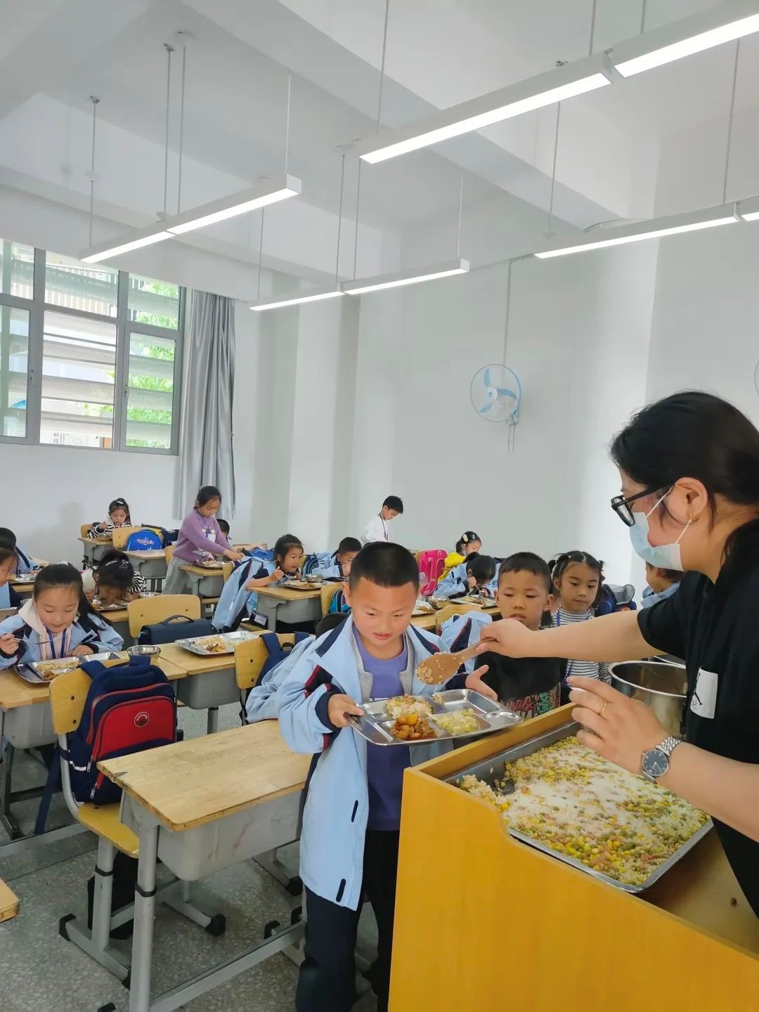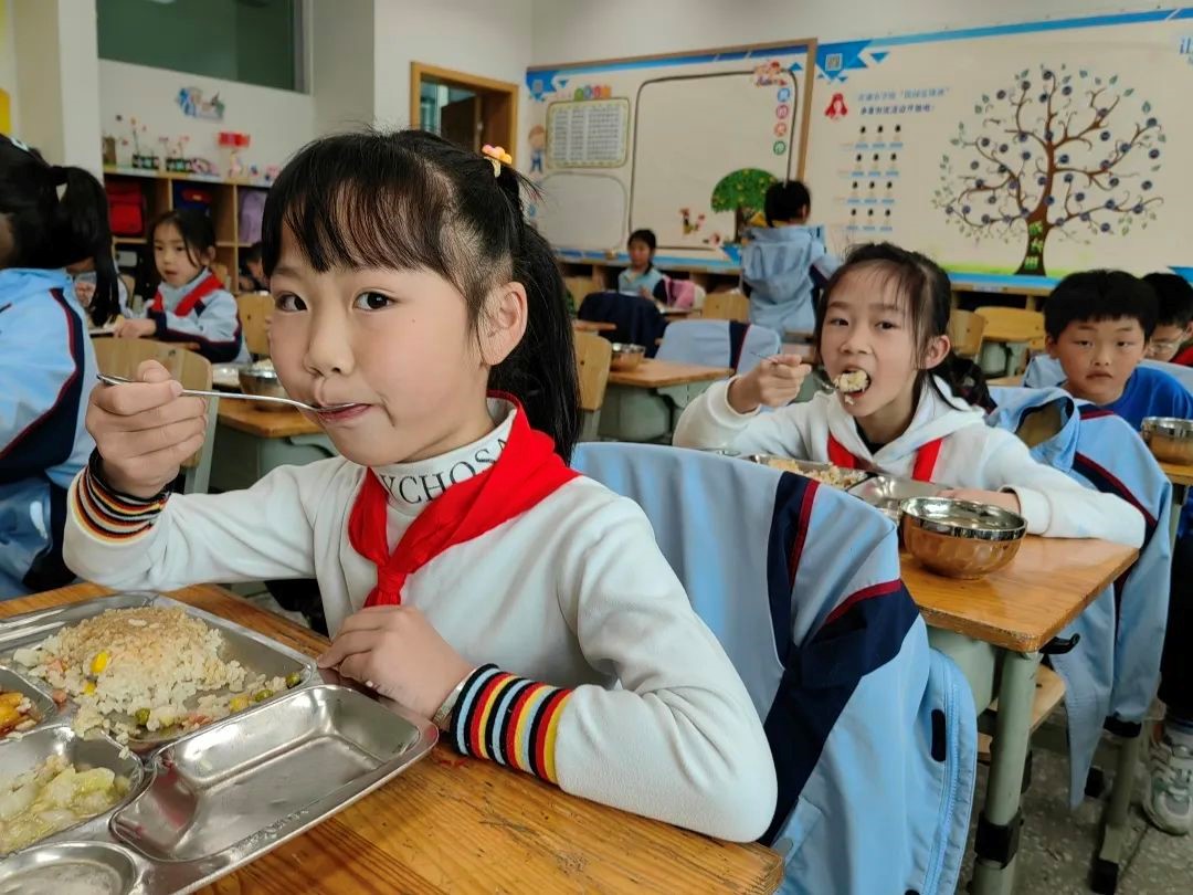 在老师的悉心指导下,小朋友们井然有序地就餐。瞧,他们排着整齐的队伍取餐,有序地回到自己的座位,安静就餐。嗯,学校的饭菜可真香!