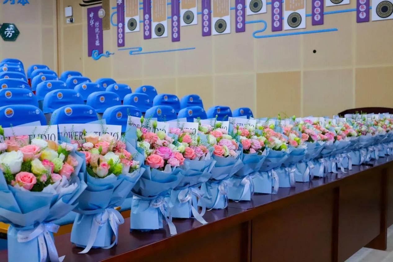 同学们用鲜花来表达对老师们的诚挚祝福。