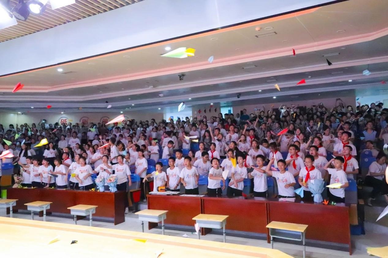 全体同学拿起提前写有未来愿望或对母校祝语的彩纸,叠出了自己的飞机。大家伴着歌声一起挥舞手中的纸飞机,愿它承载着梦想,飞向广阔的天地!