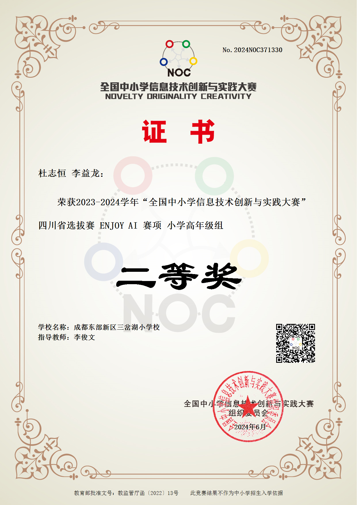 在2024年全国中小学信息技术创新与实践大赛四川赛区选拔赛中再创佳绩
