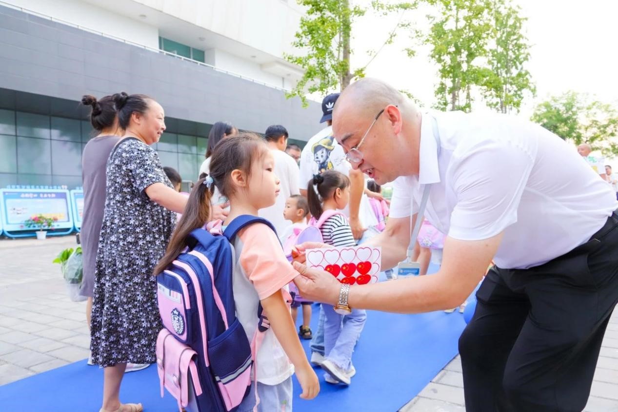 晨光熹微,秋风送爽,湖小全体行政班子列队校门口,欢迎每一位小天使的到来。他们为孩子们送上入学第一礼,贴上专属小学生的标签,祝贺他们成为了一名小学生,迈出了求学道路的第一步。在老师们的衷心祝福下,孩子们稚嫩的脸上洋溢着幸福的笑容,他们那一双双清澈的眼睛里闪烁着光芒,就像晨曦中第一缕阳光点亮大地,也点亮了校园。
