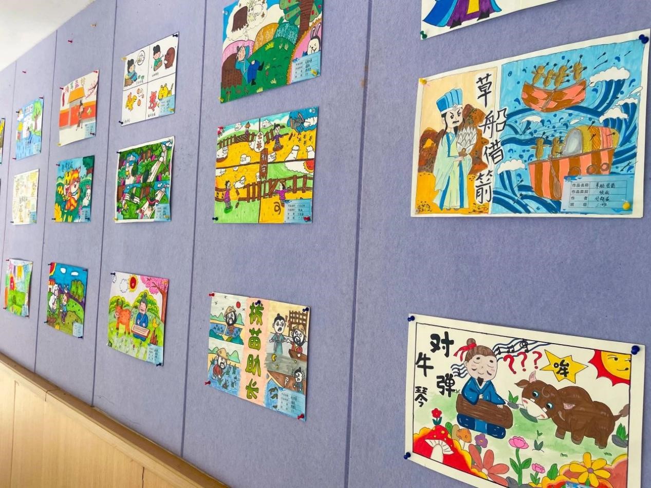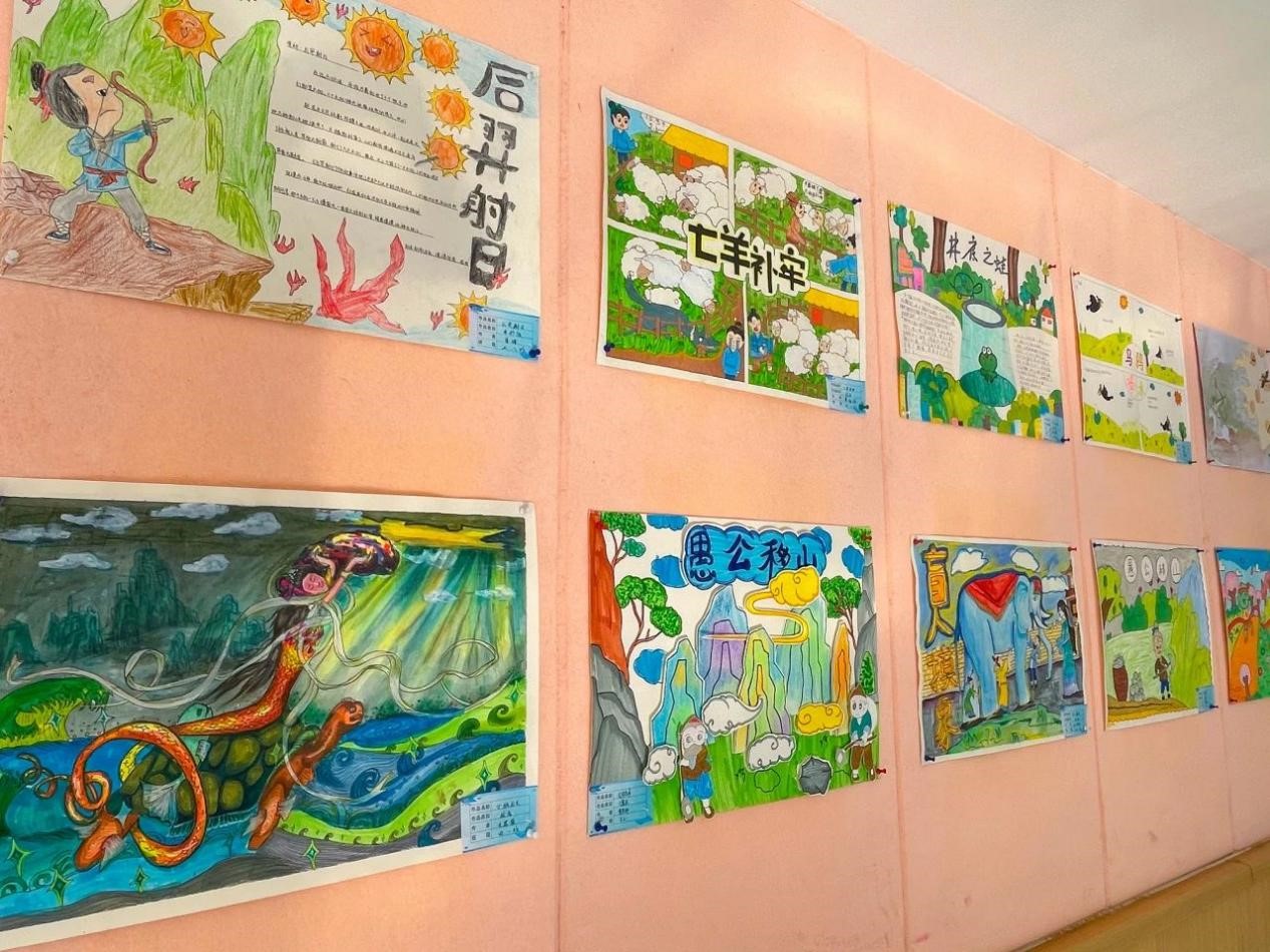 孩子们根据自己的理解和想象,用自己的巧思和巧手将我国历史故事和神话故事与绘画结合起来,在一词一句,一笔一划之间,创作出一幅幅惟妙惟肖的绘画,传递着对传统文化的喜爱。