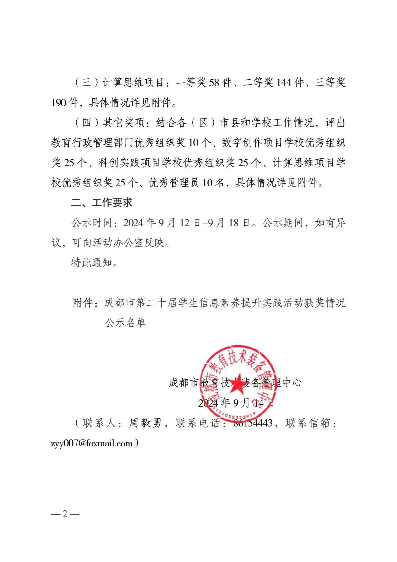 ——三岔湖小学校在成都市基础机器人竞赛和学生信息素养提升实践活动中59人获奖,学校获“优秀组织学校”奖
